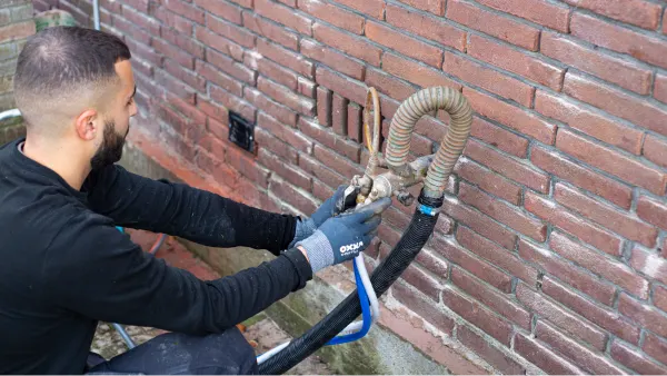 Voordat je kan laten isoleren, moet de spouw eerst schoon. De installateur haalt een paar bakstenen uit de muur, maakt de spouw schoon en metselt alles weer netjes dicht. Zo voorkom je problemen achteraf.